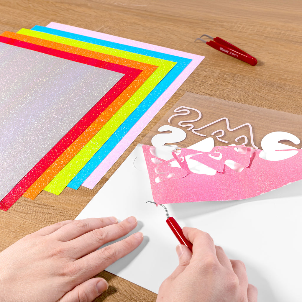 Cricut Maker: Blade: AutoBlade, Fine-Point Setting: glitter mesh Iron On |