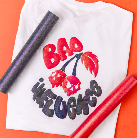 Silhouette Cameo 4: Blade: AutoBlade, 5/4 Material: Heat Transfer glitter Force: 30/25 Speed: 8 |